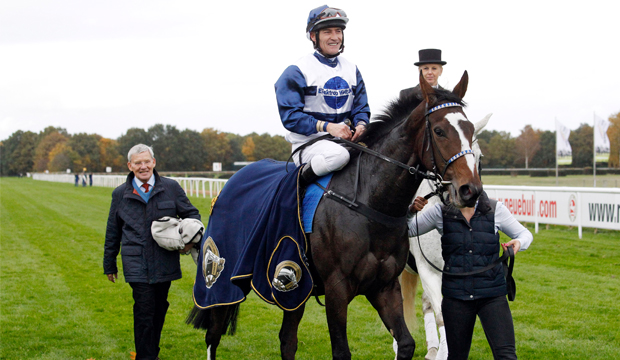 Der zur Gruppe III zählende und mit 55.000 Euro dotierte „Große Preis der Besitzervereinigung für Vollblutzucht und Rennen“ für Stuten galt als „Highlight der Highlights“ und endete mit einer Überraschung. Der Erfolg von Son Macia, die Jockey Ian Ferguson (Foto oben) in einem spannenden Finale vor Nazbanou und Gambissara über die Ziellinie führte, war ein satter Außenseitersieg. Die klare Favoritin Kasalla mit dem eigens aus Katar eingeflogenen Jockey Adrie de Vries wurde nur Vierte. Damit feierte Trainer Andreas Löwe kurz vor seinem Karriereende noch einmal einen großen Sieg.
